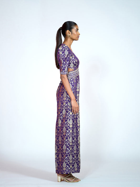 Purple Brocade Jumpsuit