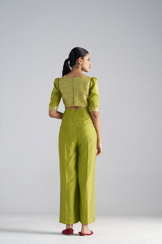 Green Brocade Jumpsuit