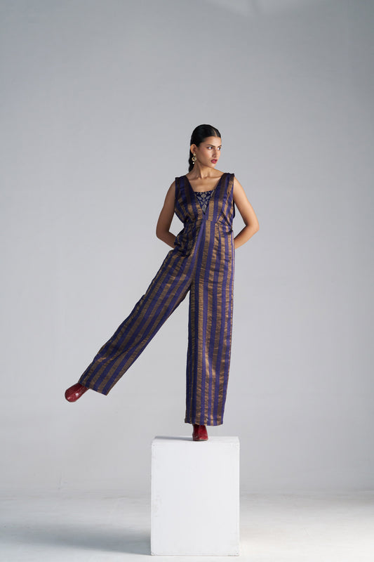 Blue Striped Jumpsuit with bustier