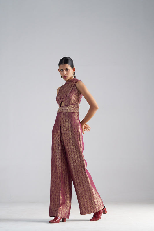 Wine Brocade Jumpsuit