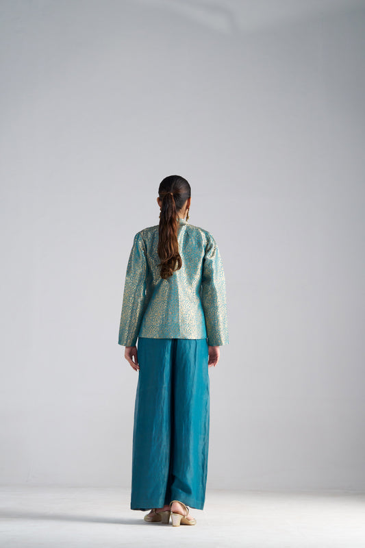 Teal Blue Jumpsuit With Brocade Jacket