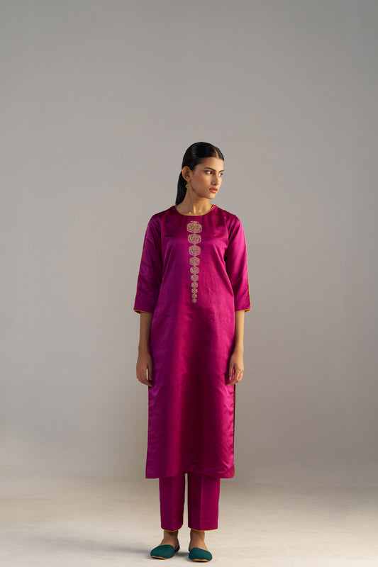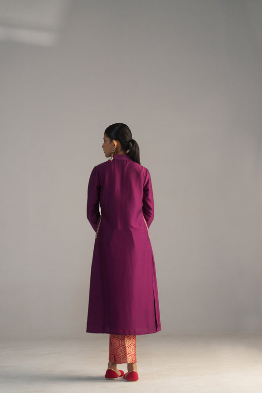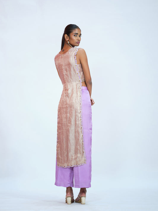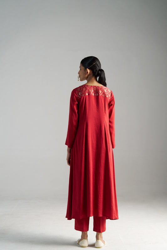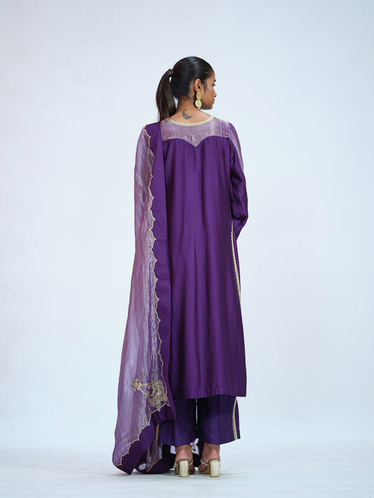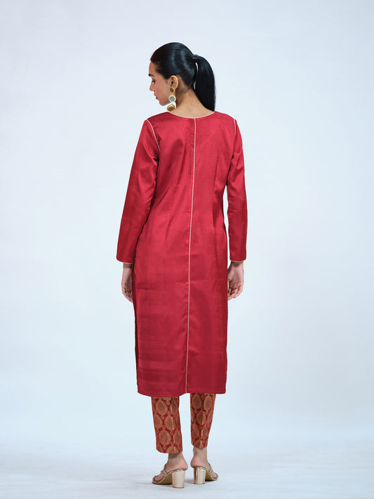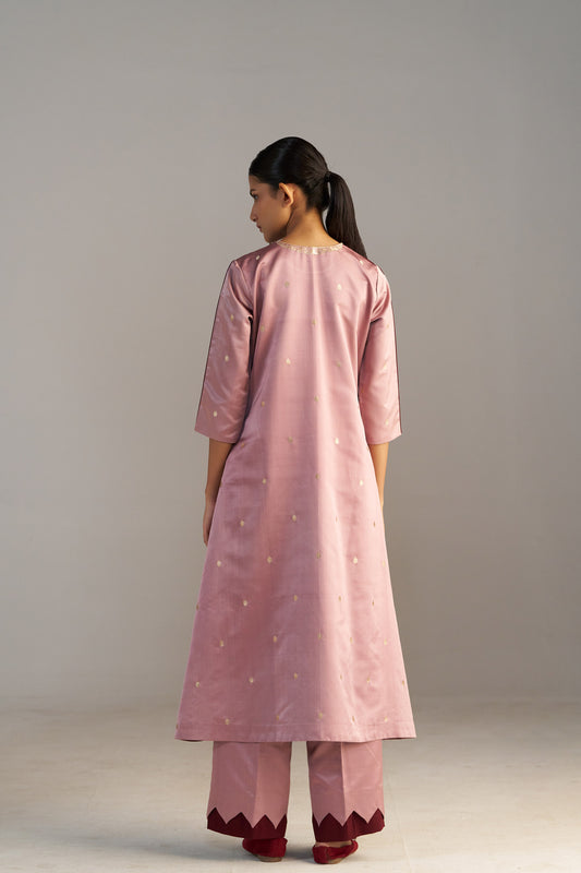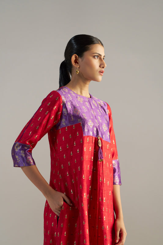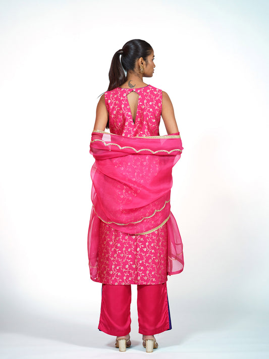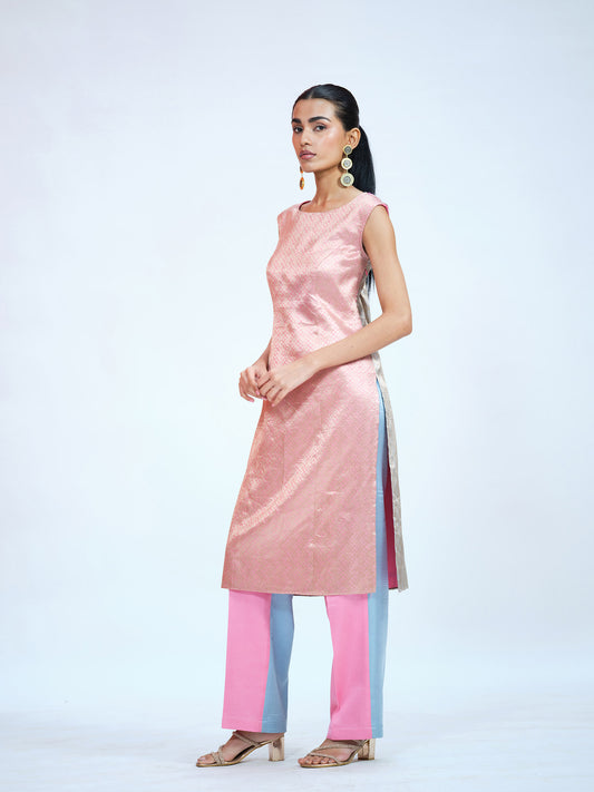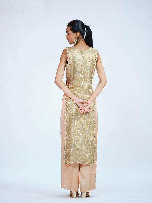 Teal Blue And Yellow Brocade A-line Kurta Set