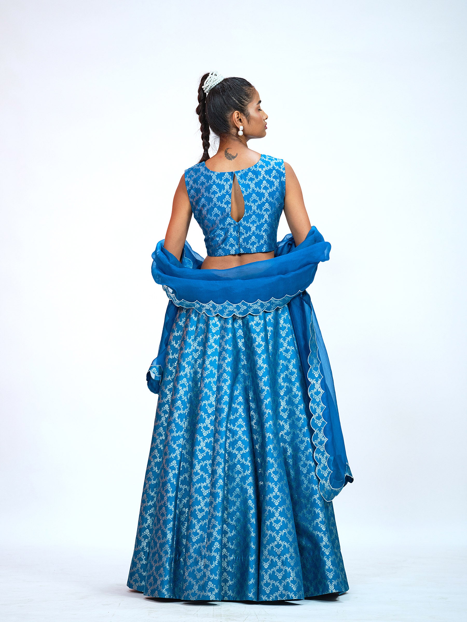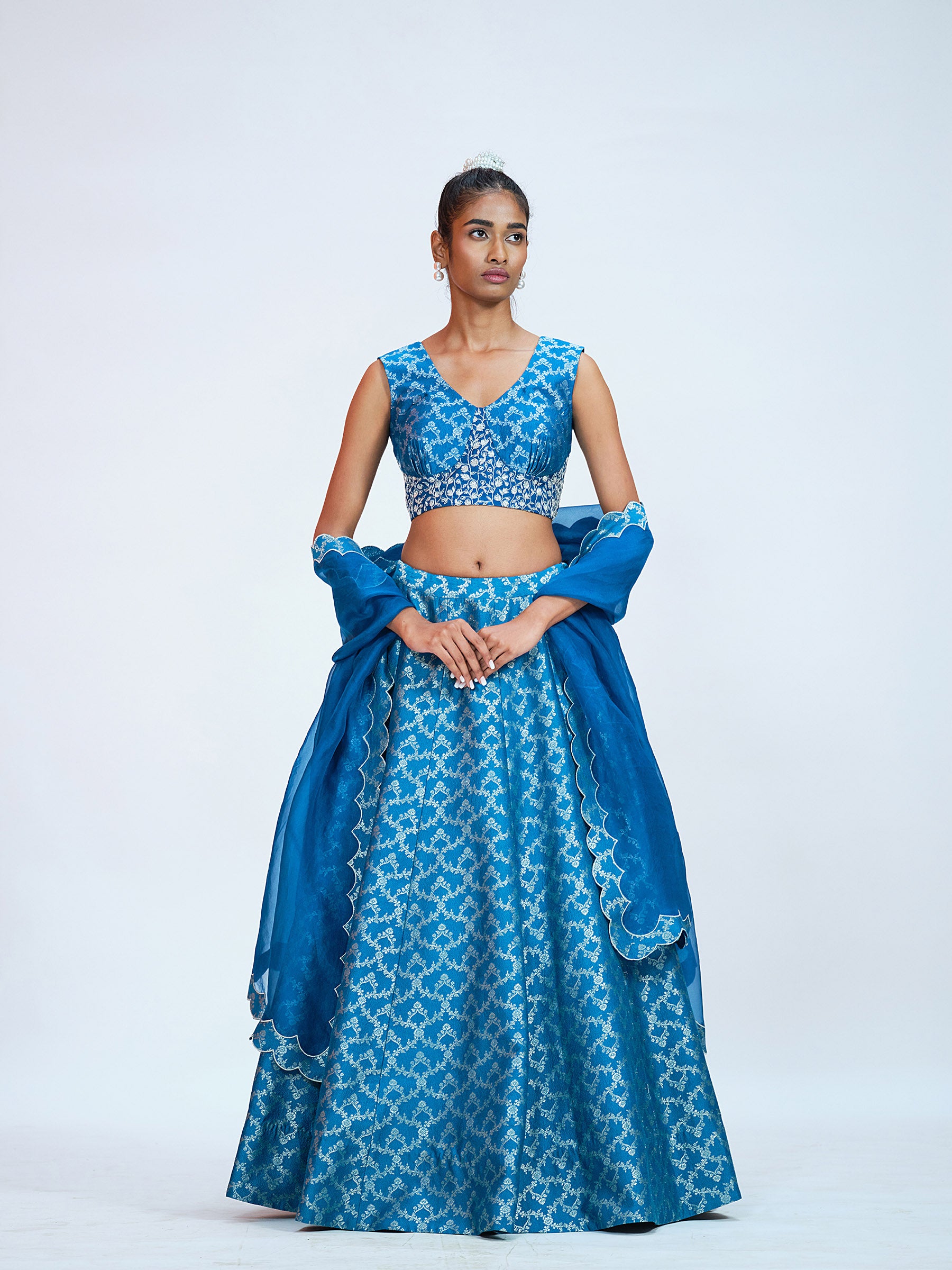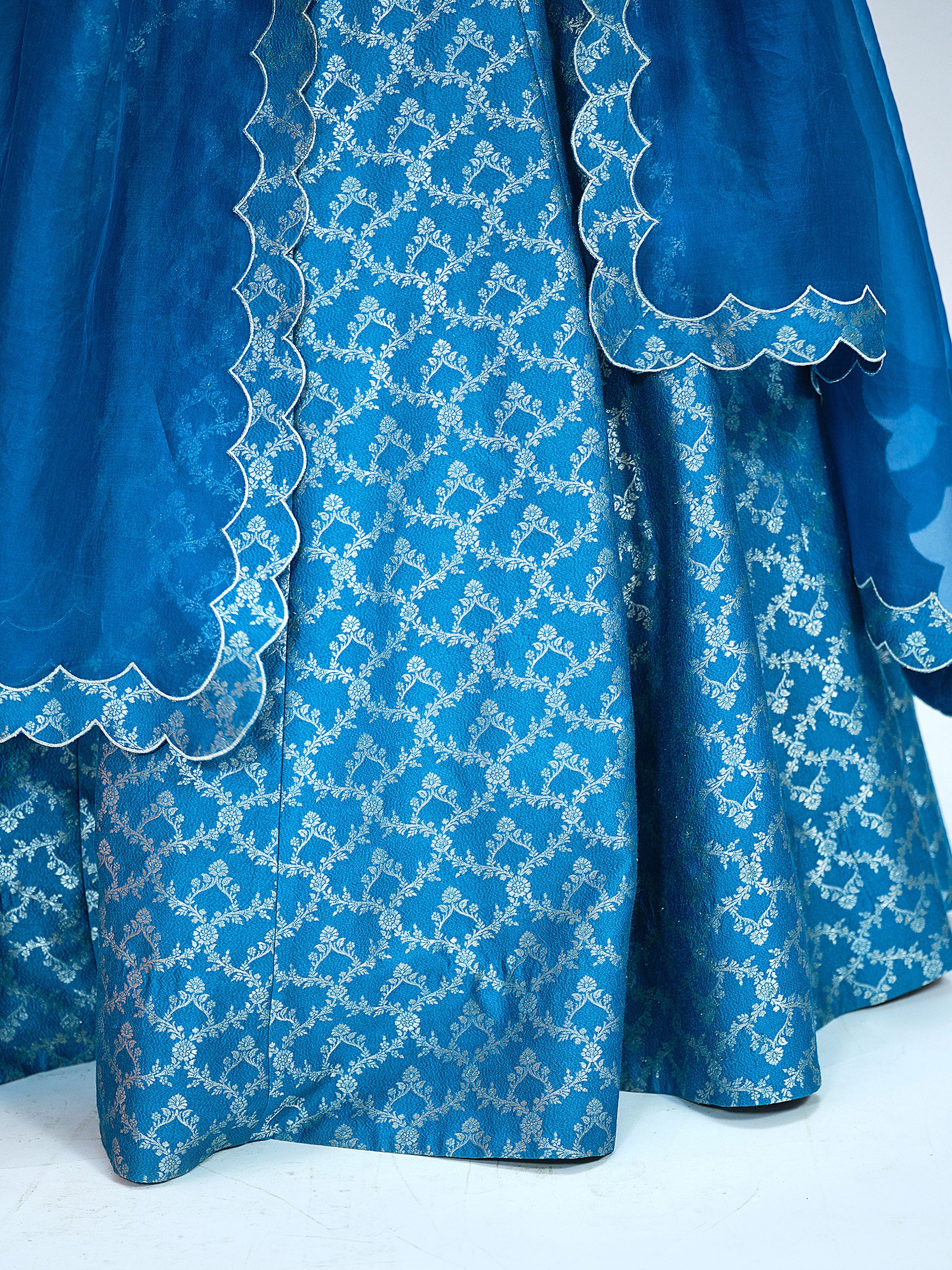 Teal Blue Brocade Lehenga